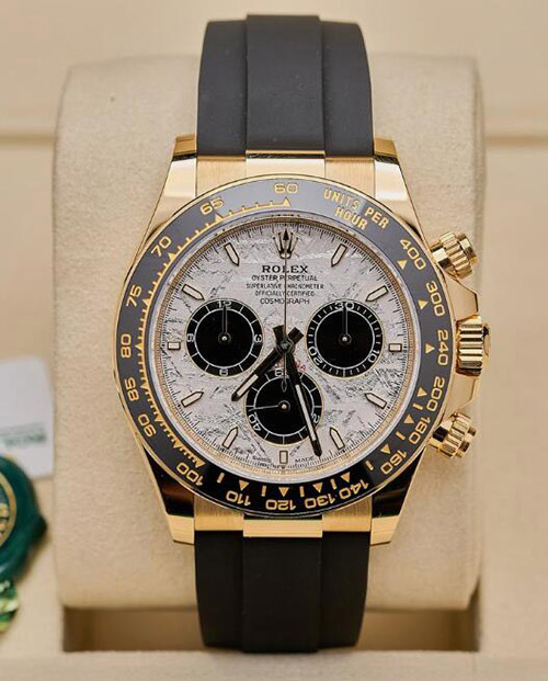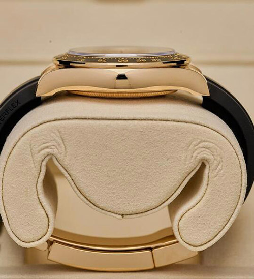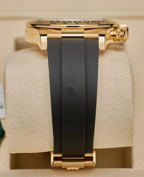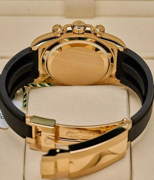 機能: 時針、分針、スモールセコンド(6時位置)。中央の秒針によるクロノグラフ、積算計(30分/3時位置、 12時間/9時位置)。秒針停止機能による正確な時刻設定